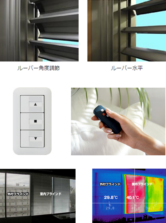 プライバシーを守りつつ、通風・遮光・採光ができ、居心地のよい環境をつくります。また通気性にも特化しておりますので、エアコンに頼らず、環境に配慮したエコライフを実現できます!ボタン一つでルーバーの角度を変えられるので簡単&安全です。また建物のデザインに調和するするのでどのような雰囲気でもマッチし外観を邪魔しません。