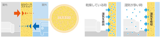 木の繊維はたくさんの空気の粒を内包しており、この大小さまざまな繊維が絡み合うことで、さらに多くの空気を含み、これが高い断熱性能を生み出します。