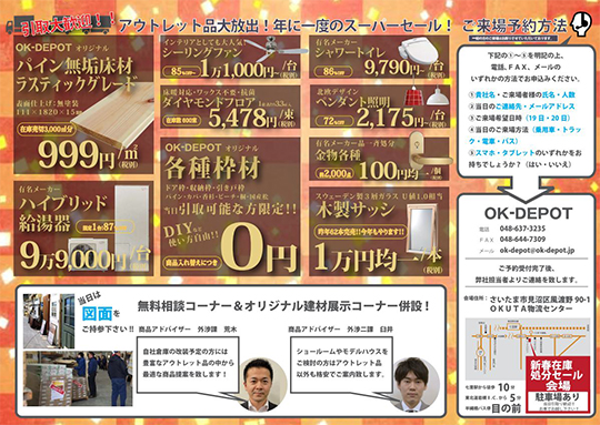 OK-DEPOTでは、お客様への日頃の感謝をこめて、年に一度の新春在庫処分セールを弊社物流センターにて行います!
