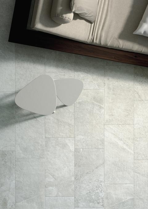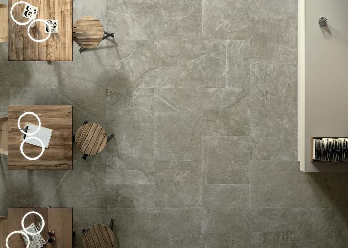 イタリア産の天然石を忠実に再現したセラミックタイル。外床タイプのグリップ、内床タイプのマットをご用意し、屋内外一続きの空間を演出することも可能です。
