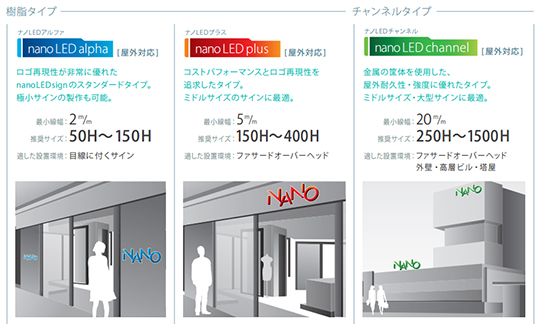 環境・サイズ・コストに応じた最適なタイプをお選びいただける、株式会社オミノの高精細LEDサイン「nanoLEDsign/ナノサイン」のご紹介をいたします。