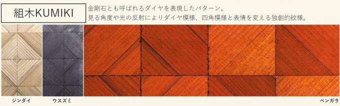 建材ナビ・スタッフからのコメント 『職人の技』が詰まった杉をふんだんに使用した寄木細工です。色あざやな寄木細工は、自分の中の寄木細工イメージが変わりました。変わらぬ美しさをいつまでも続く、他にはない温もりのある製品となっています!