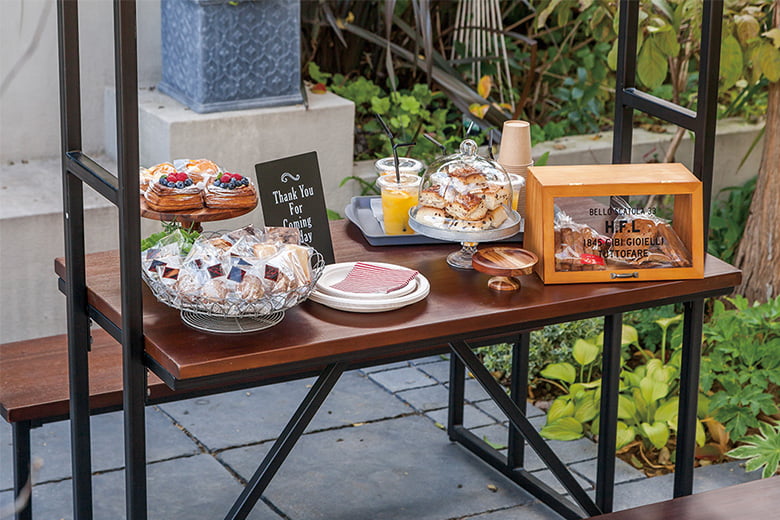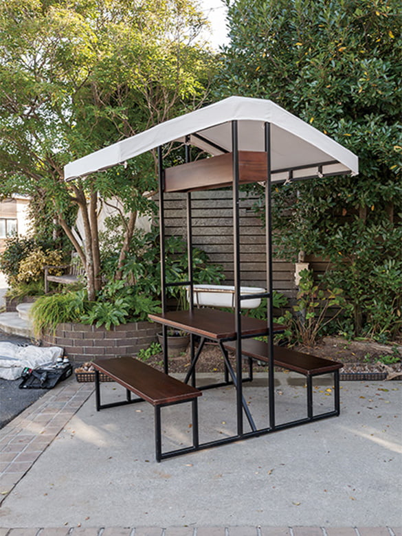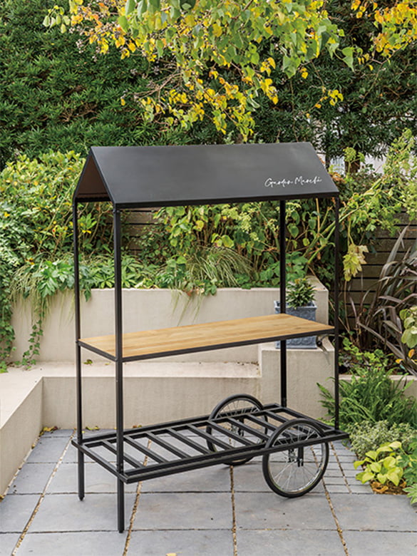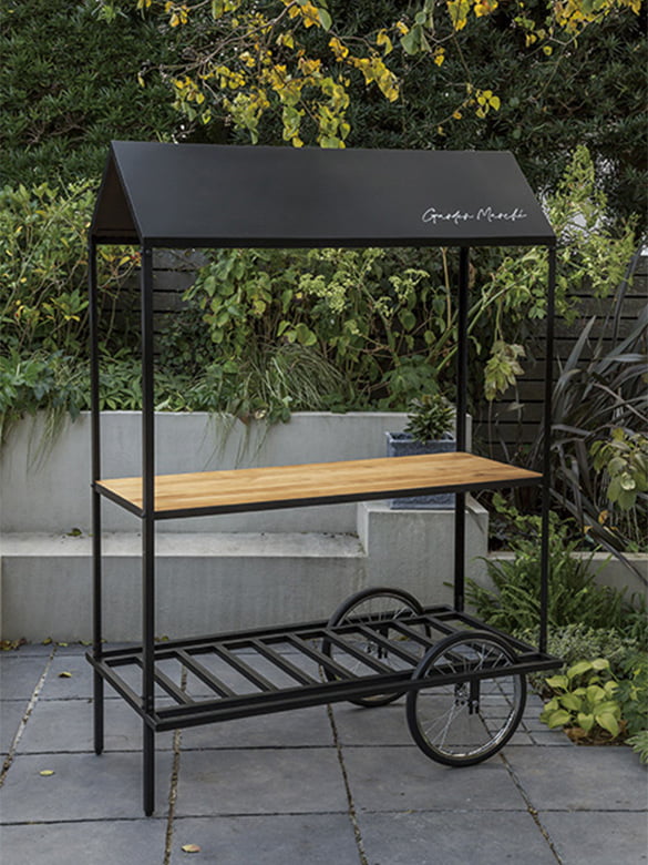 見ているだけで気分が跳ねる、マルシェワゴンやテント付きのテーブルセット。お庭でのガーデンパーティなど、アイデア次第でいろんな楽しみ方ができるほか、実際にショップワゴンとしてもお使いいただけます。