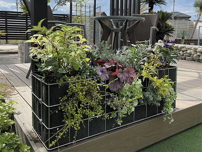 段差のある敷地では、ガビオンが優れた土留めとしての役割を果たします。自然石の風合いが周囲の景観に溶け込み、圧迫感なく高低差を解消できます。また、花壇の縁取りや、菜園の仕切りとしても活用でき、植物との相性も抜群です。