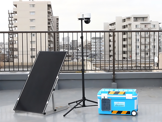 電源確保が難しい場所でも監視できる1台で最大25日稼働するバッテリー×ソーラーパネル付き