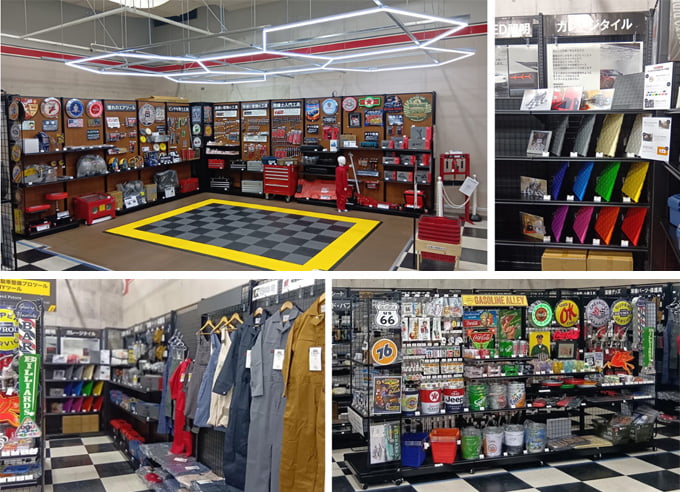 自動車整備士も使用する高品質な工具を中心に、多くのプロショップが使用するラッピングシートや特殊塗料など、愛車を自分らしくカスタマイズできるDIY商品を展開されており、アメリカン雑貨など、ガレージライフの世界観を感じられるアイテムも豊富にそろえ、工具の専門性とライフスタイルが融合したショップです。