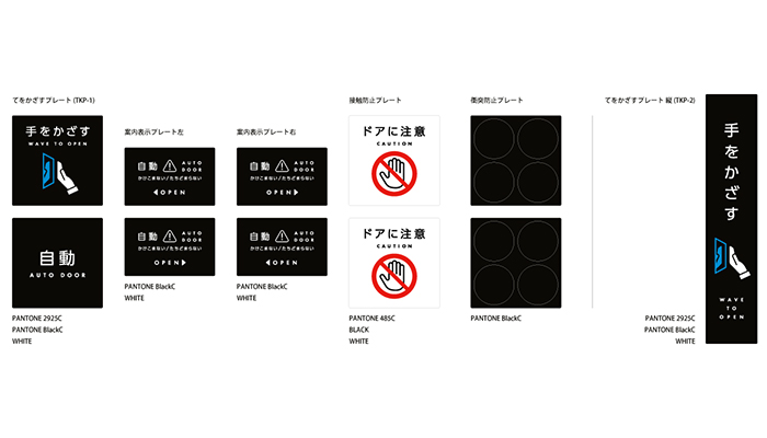 てをかざす位置の目印になるプレートです。てをかざす動作をイメージしたアイコン・文言で通行者にアピールしております。抗菌・抗ウイルス仕様の素材を採用。