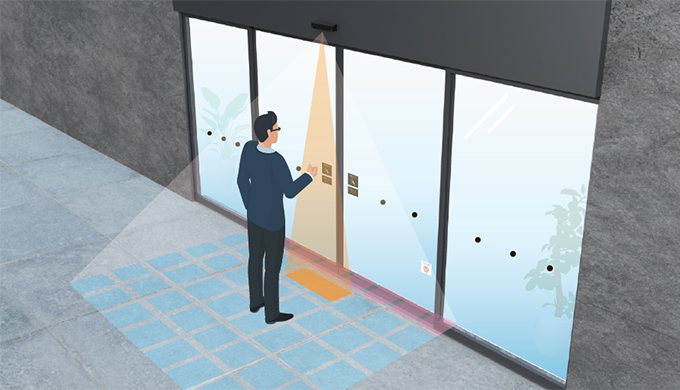 人が触れる場所やモノは、衛生的な状態を保つためのアルコール消毒などに加え、非接触タイプの自動ドアセンサーも物理的なリスク対策として期待できます。オプテックスでは、店舗や病院など使用環境に応じた非接触タイプの自動ドアセンサーをご提案しています。