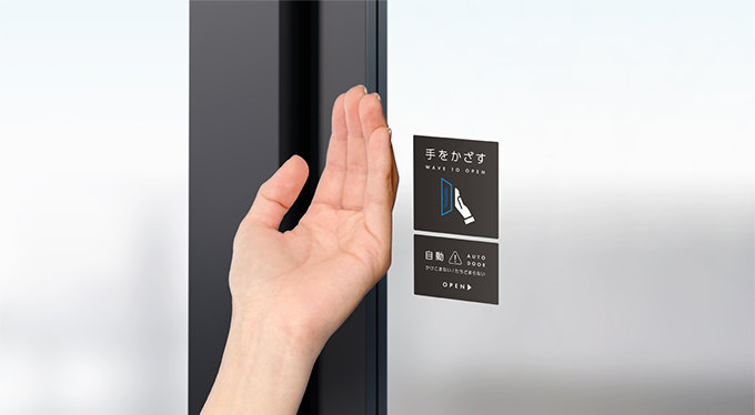 現在、感染症対策としてウイルスや細菌の付着による感染リスクを低減するために、非接触製品への関心が高まっています。そのひとつである非接触タイプの自動ドアセンサーは、ドアノブ(※)やスイッチに直接触れることなく、ドアの開閉が可能です。