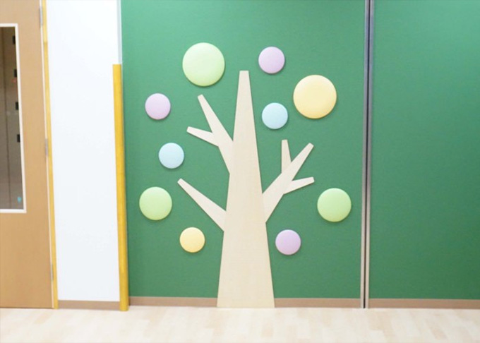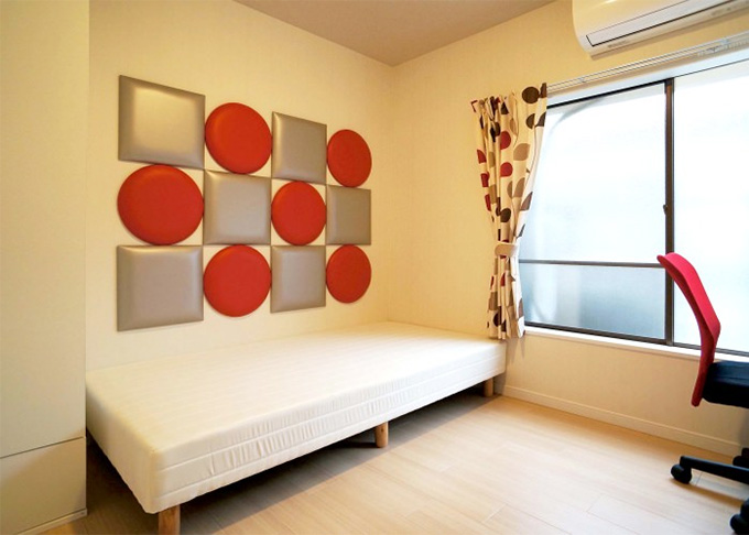 ソファ・ベッド作成で培ったノウハウで、ホテルや老人ホーム、店舗、子供用のチャイルドルーム等の壁面に布団張り(ふとん張り)を施工致します。
