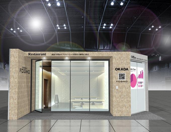 岡田装飾金物株式会社は、本展示会において、日本初の調光移動間仕切「FOGMO」を実際に体験していただける展示ブースを出展いたします。