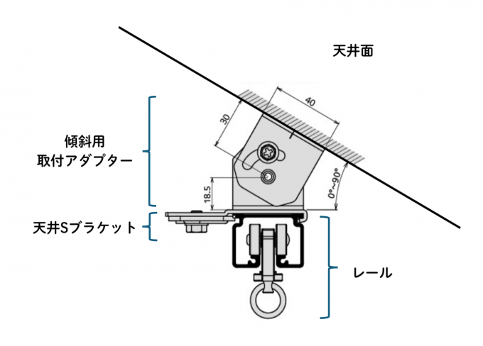 傾斜のある場所へのレール取付が簡単に行えます。下地工事が不要で作業効率UP!