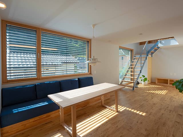 外付けブラインドヴァレーマは、太陽光が最適にコントロールされ、さらに、自動で開閉されるので、暑い、眩しいというストレスを感じることがなく、業務に集中できます。直射日光が入ってきて、仕事を中断してブラインドを閉めにいくということがよくありましたが、新社屋では直射日光が気になったり、太陽光が眩しいと感じることがないです。また、ヴァレーマは、西南東面の窓についていて、北面だけ、ヴァレーマではなく、室内側にロールスクリーンが付いているのですが、北面は暑いと感じるという意見があります。北面ですが、少しだけ西日が入ってくるので、その影響でヴァレーマが付いていない北面では暑いと感じるようです。北面との対比で、外付けブラインドがついていると快適さが全然違うのだと実感しています
