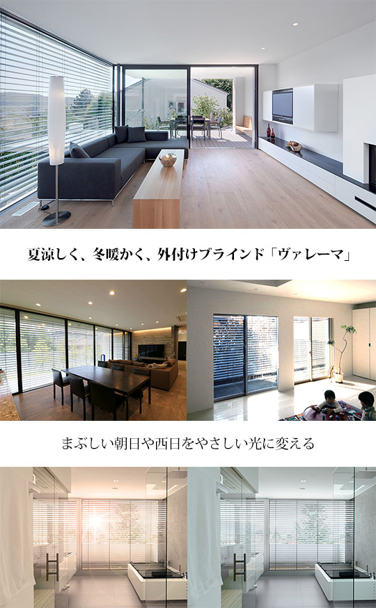 弊社HPにて、施工事例を多数掲載した外付けブラインド「ヴァレーマ」のデザインPHOTO BOOKを無料でお送りしております。施主様へのご提案用にぜひご活用ください。