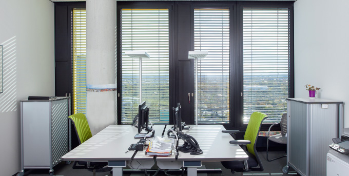 「ヴァレーマ」は、オフィス、学校、工場、病院、福祉施設やゼロエネルギービルディングなど多くの実績を持つドイツ生まれの外付けブラインドです。