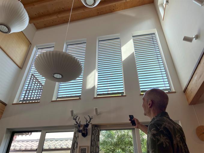 吹き抜けの2階部分に取り付けるということで、1階から見上げた時に畳んだブラインドが下から見えないようにするため、通常よりもブラインドの取付位置を少し上にするという提案もしていただきました。