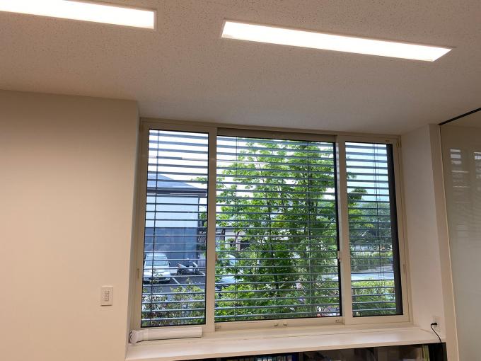 以前のオフィスだと、ブラインドを閉めたら、閉めっぱなしということも多くありましたが、今は、自動でブラインドの羽根がベストな角度に調整されて、光も入るし眩しくないので快適です。