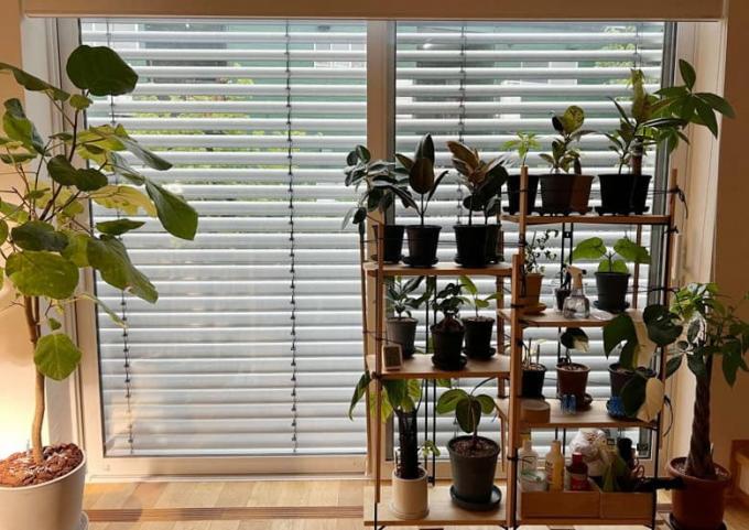 窓際で観葉植物を育てているため、秋から冬、そして春にかけて、日光をうまく取り込めるように太陽の高度に合わせてブラインドの角度を調整して使用しております。