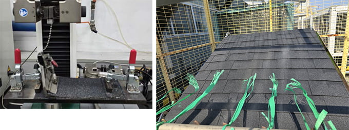 シングル材表面に付着されている粒状石(グラニュール)が、外部からの衝撃や雨風、積雪などの影響を受けてどの程度剥がれ落ちるかを評価する試験です。オークリッジスーパーは定期的にASTM規格の試験を実施·品質管理を行い、耐久性向上のために常に努力しています。今回の改良で自社記録更新はもちろん、業界ベストのパフォーマンスを記録しました。