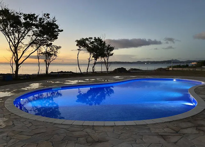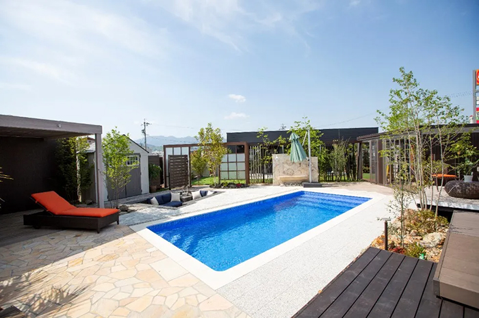 ろ過装置一体型プールのシンプル構造!デザイン性が高く、サイズ、形状は自主自在!ヴィラやホテルなど商業施設でも採用実績あり。