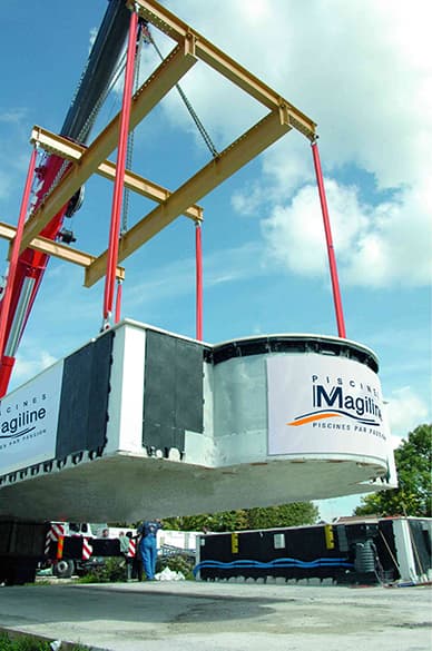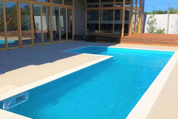 マジラインプールは、躯体に強化PVCライナーを取り付け、水圧によって圧着する構造。つまりプールの水は大きな袋の中に入っている状態です。