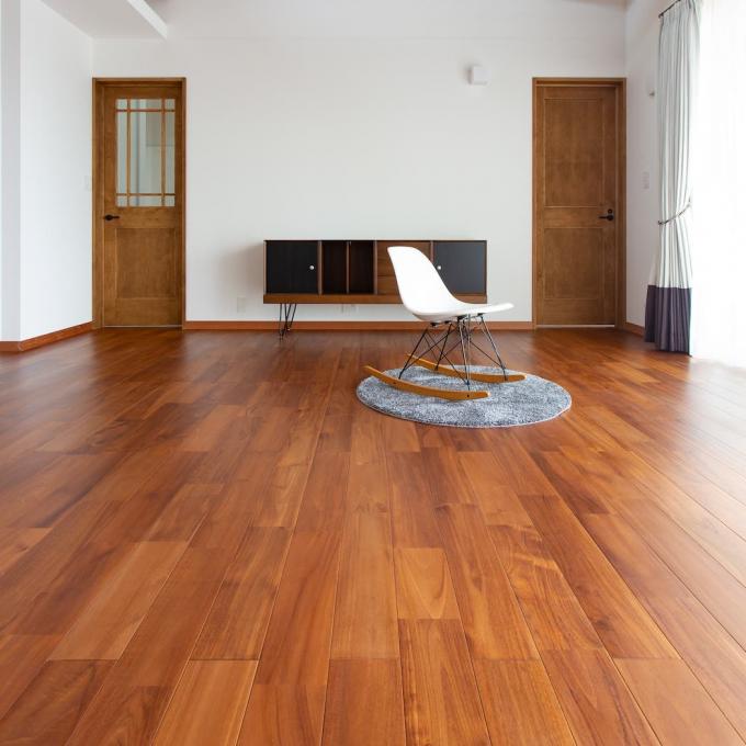クルミは北米のブラックウォールナットに類し、で木目もよく似ていますが色味は異なり軽くてやわらかめの木です。キャラクターグレードは、既存のスタンダードグレードと比較すると色差が大きく、若干の節や髄心などの特徴が入ります。個性的な床を演出する無垢フローリングです。