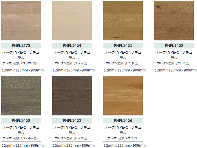 表層約2mm厚の突板がご好評の複合フローリング「オークTYPE-C」に、くすみカラーのクラウド色が加わり7色の展開になりました。