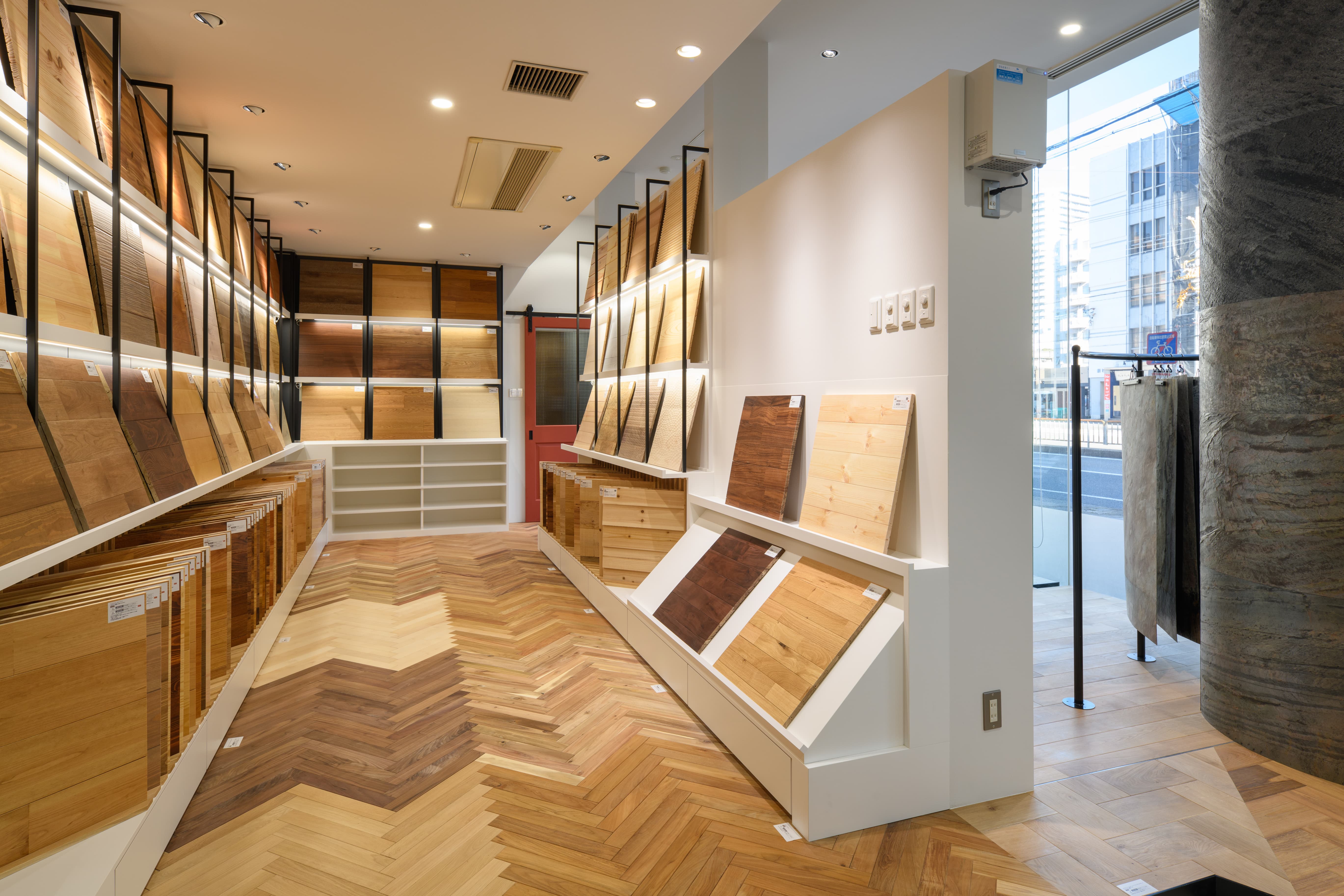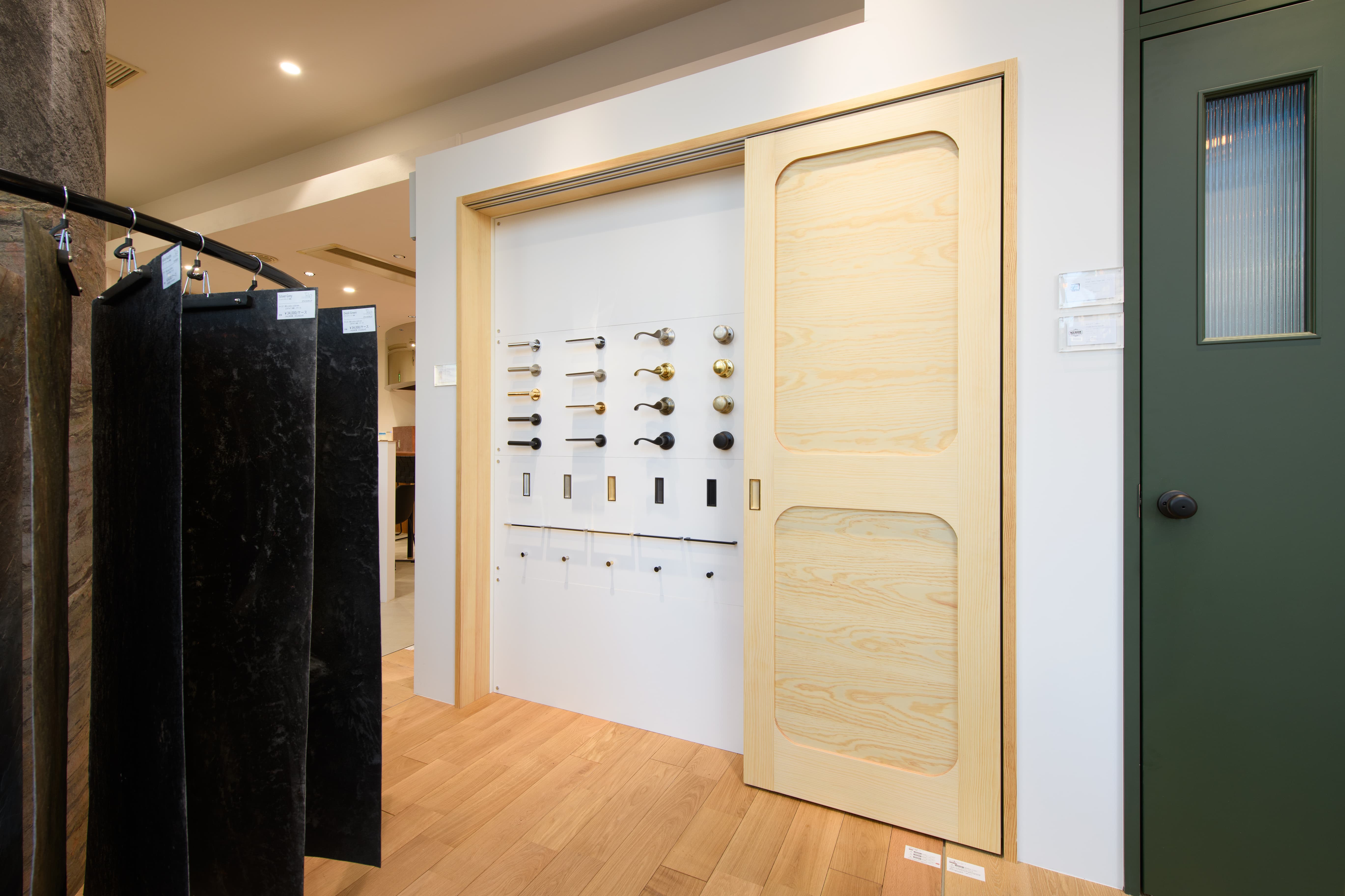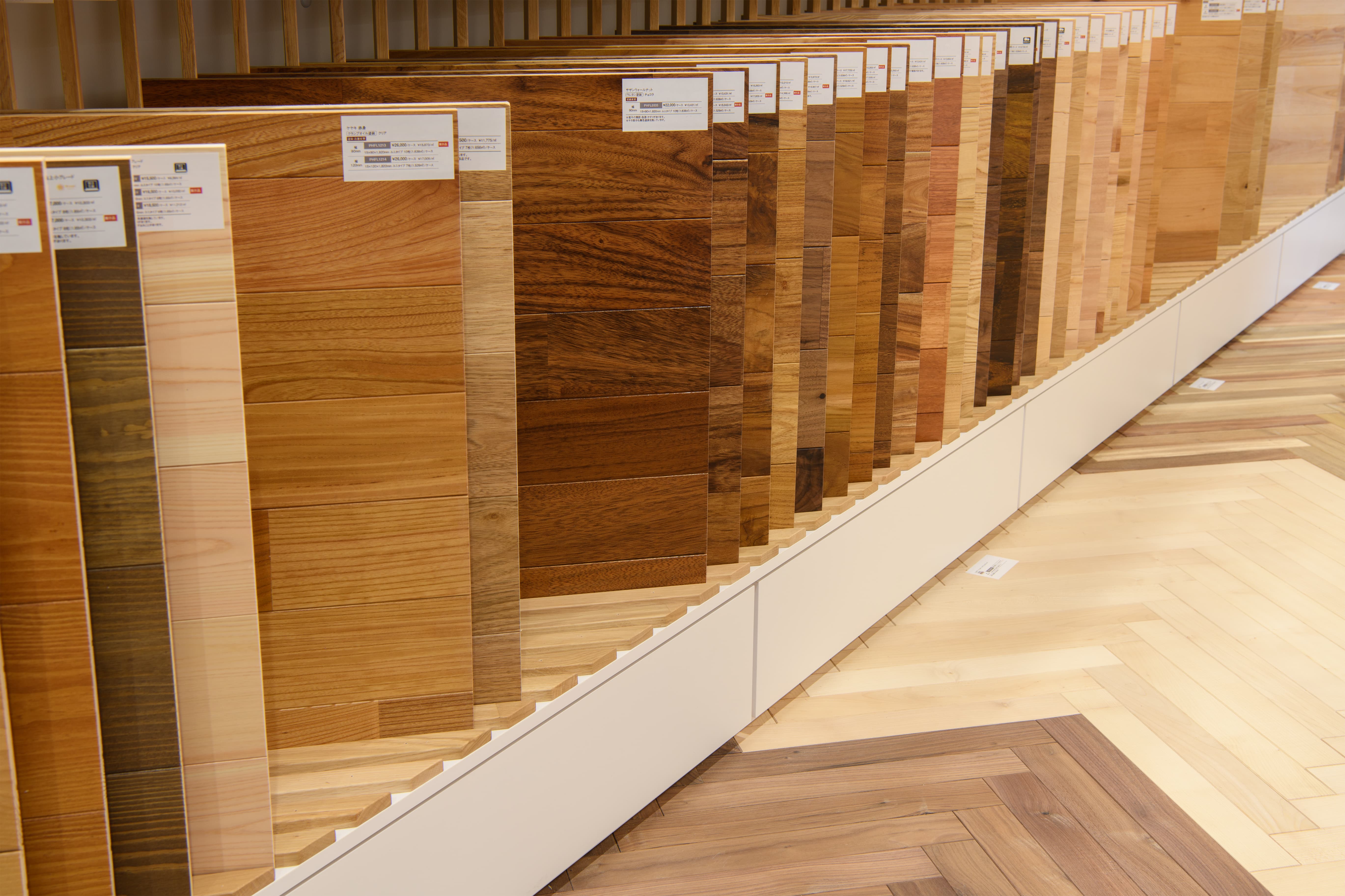 各種無垢フローリングや、三層・複合フローリング、ウッドパネリング、室内ドア、玄関ドア、木製サッシまで多数展示いたします。実際の商品を比較しながらご相談いただいたり、気になったフローリングについてはカットサンプルをお持ち帰りいただくことも可能です。