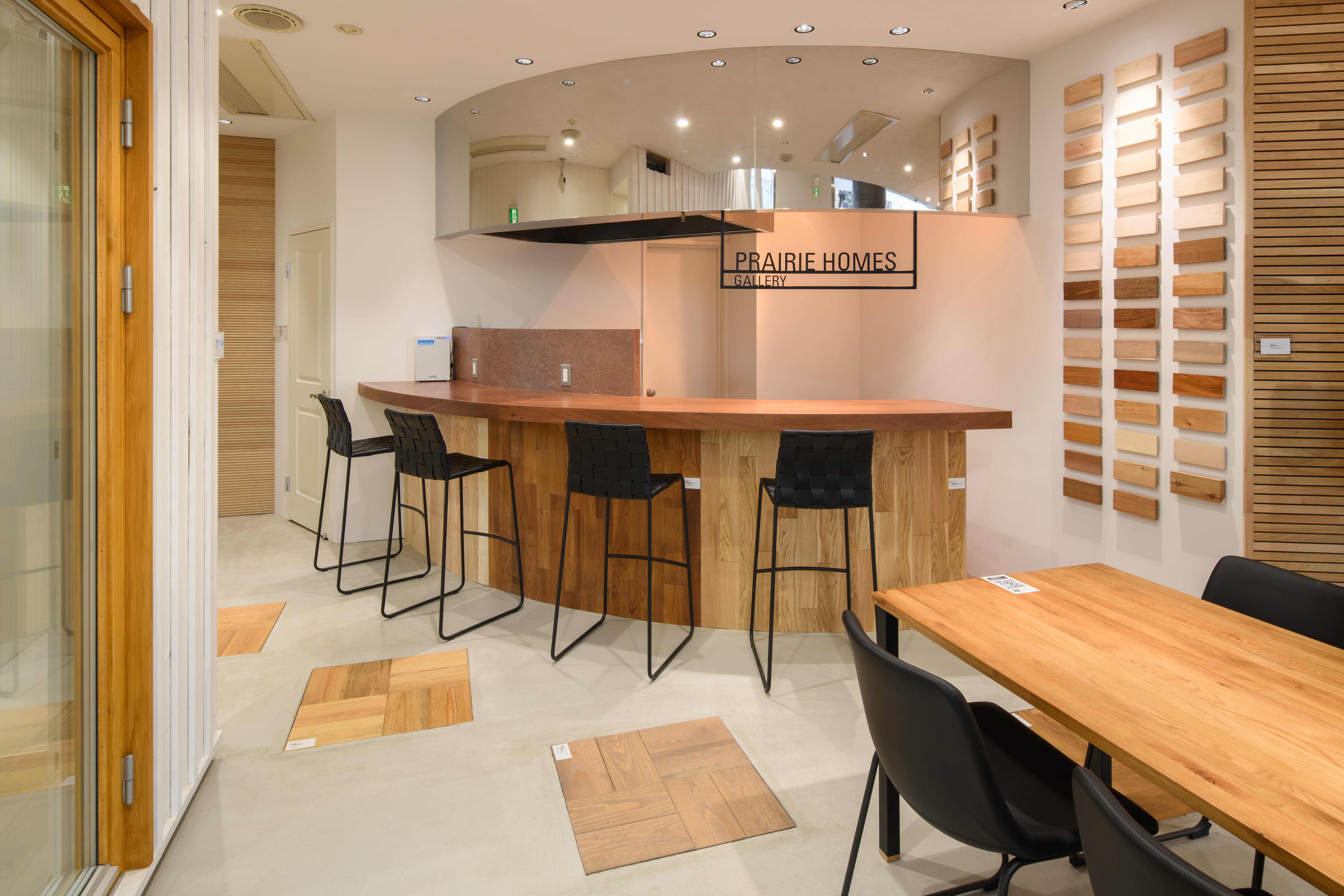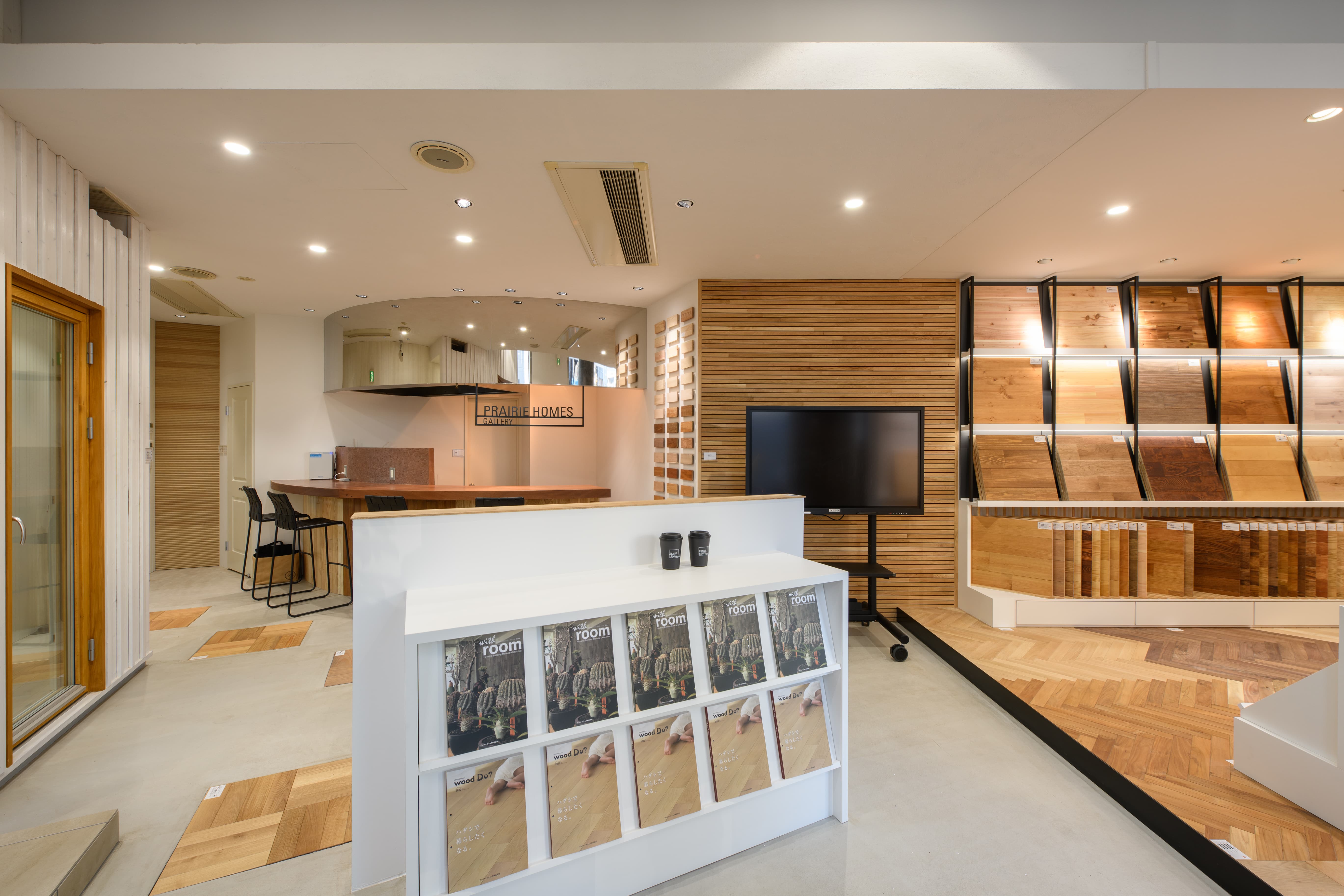 自然素材にこだわるプレイリーホームズの商品を実際に見て、触れて、体験いただけるショールームです。