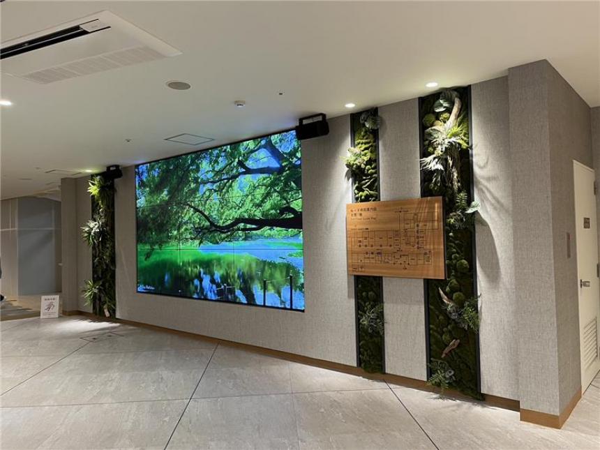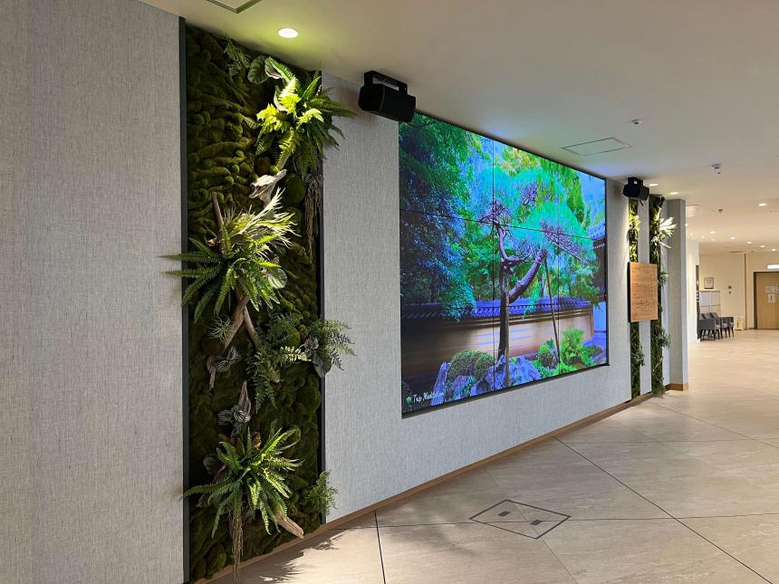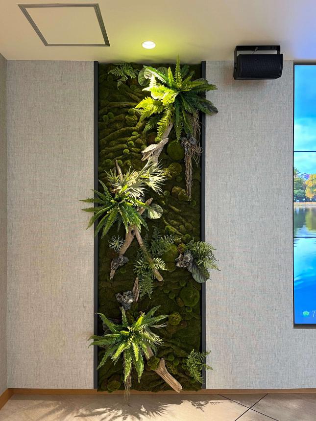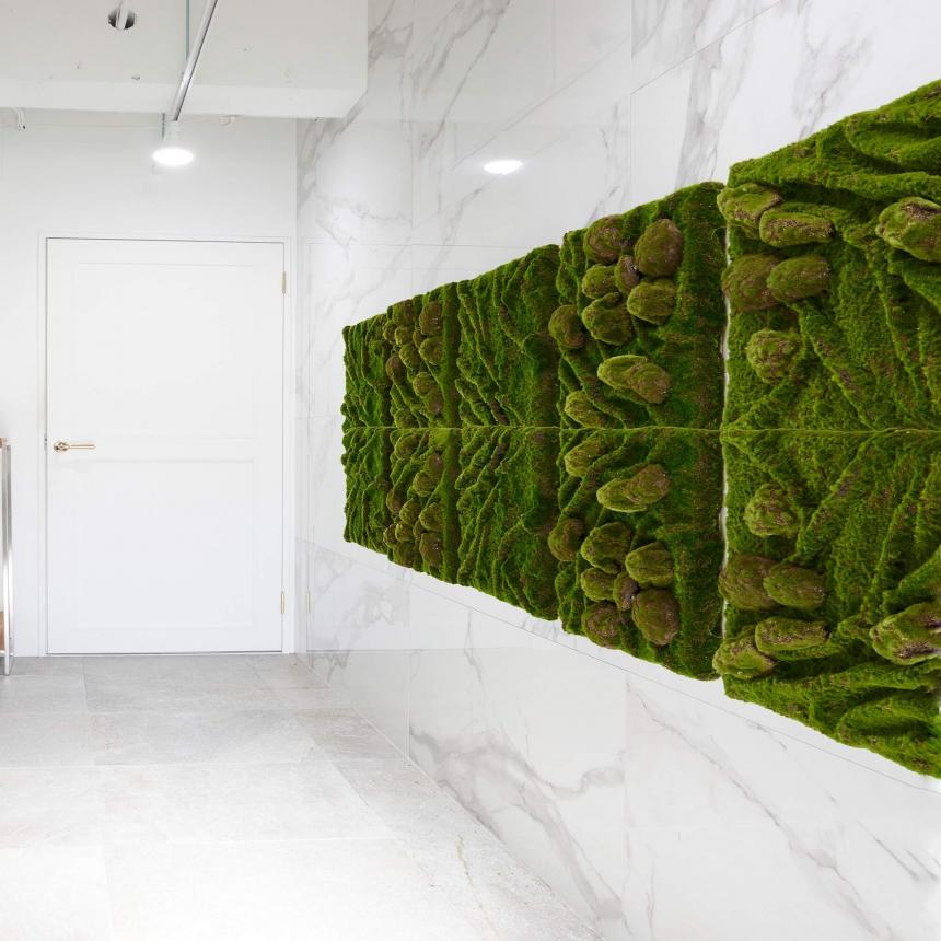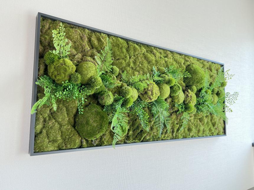 本物のような苔をフレームの中に美しく配置し、優美な日本庭園をイメージさせたウォールグリーン。