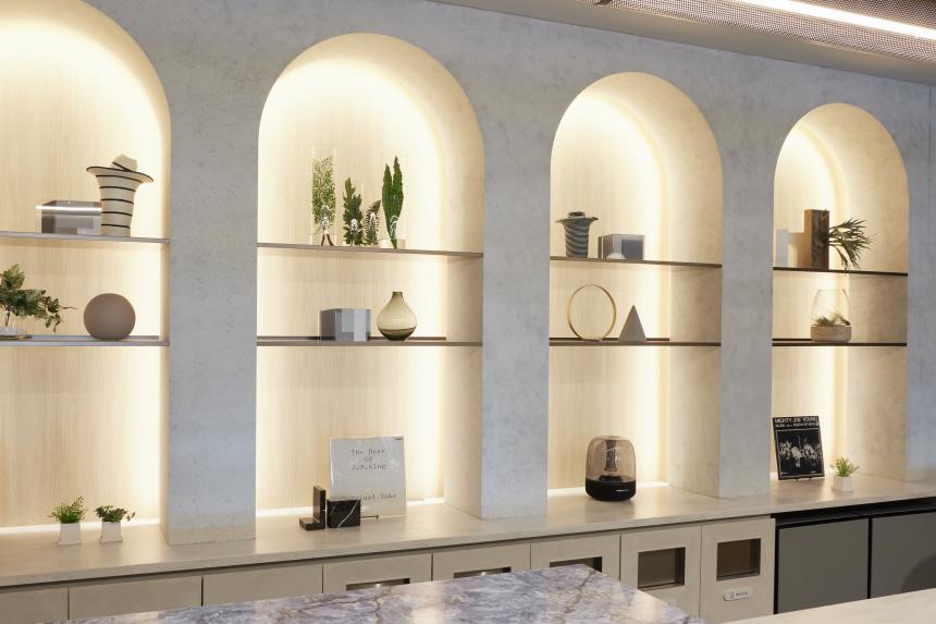 まるで本物の水が入っているかのような、涼しげで清潔感のあるフェイクウォーターグリーン