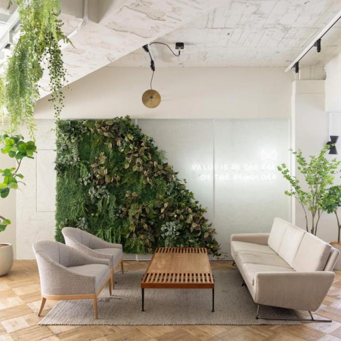 オフィスや店舗で働く人のストレスを取り除き、お客様へ安らぎを与えるグリーン装飾。