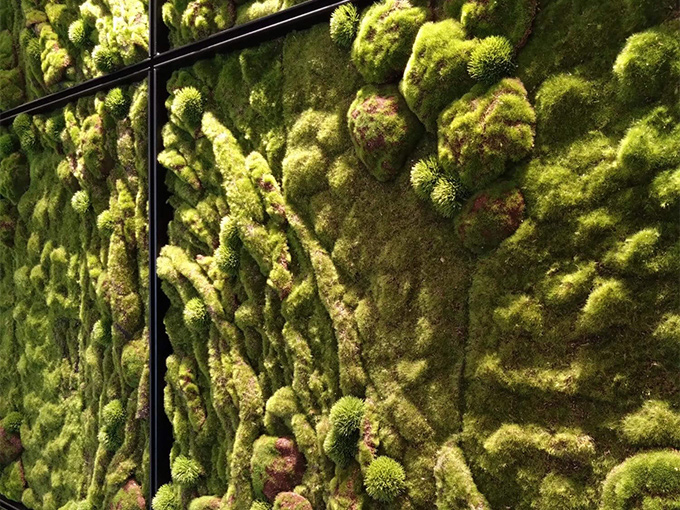 かっこいいリアルな質感の苔の壁面緑化が完成しました。
