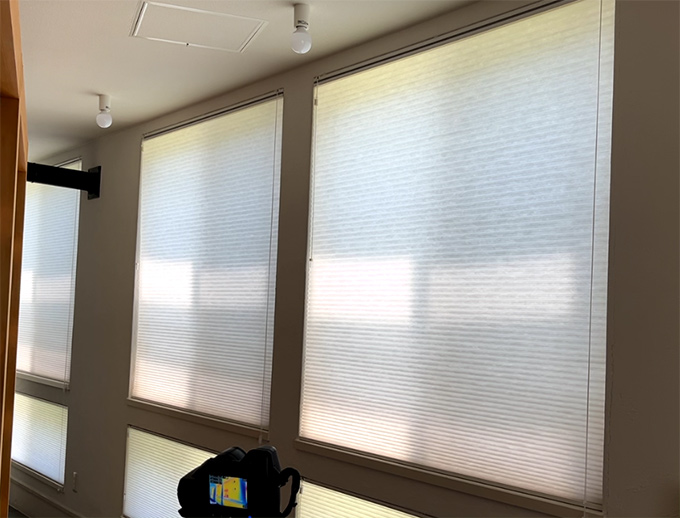 年々夏場の外気温度が高まる中、猛烈なこの日射熱は開口部から大きく室内に影響させます。夏場の室温上昇対策には窓の日射遮蔽、断熱対策が最も効果的で重要になります。ハニカムブラインドは、窓表面温度を約15%温度低減効果をもたらせ、電気代高騰する中、冷房の効率化と省エネ化にも役立ちます。