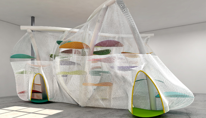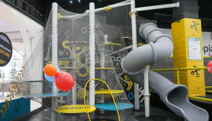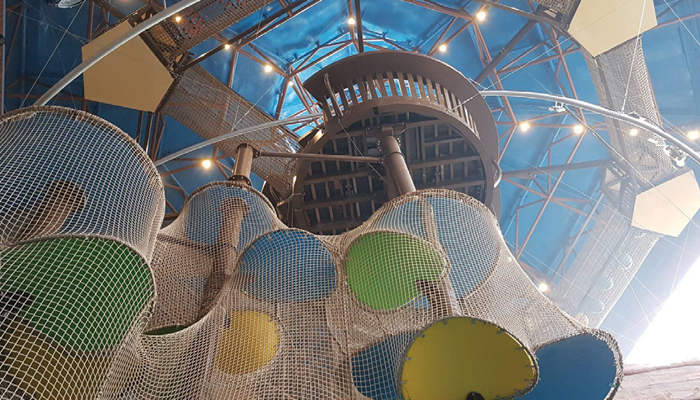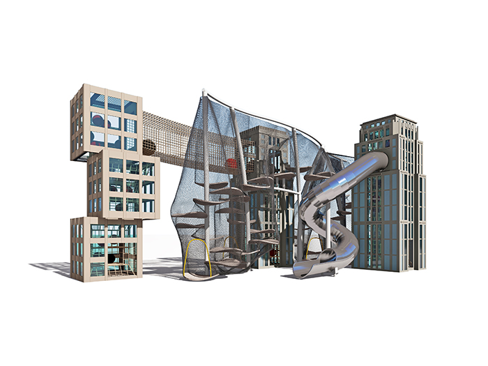 クラウドクライムは4~14歳までの子どもが楽しく遊べるカスタムメイドの遊具です。ジャングルジムと迷路を掛け合わたその彫刻のようなアトラクションはハーネスを必要とせず、子どもたちが自由に、あたかも雲から雲へとジャンプしているかのように登っていくことができます。また、クラウドクライムは欧州規格EN1176に適合しています。