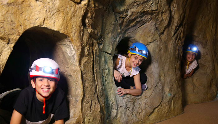 人工洞窟の中では、小さな穴をくぐったり、鍾乳石や石筍の中を歩いたり、飛び込んだり、宝物探しなどが体験でき、深層心理にある探検することの楽しみと自然への好奇心を養い、自分の限界を試す絶好の機会となるでしょう。
