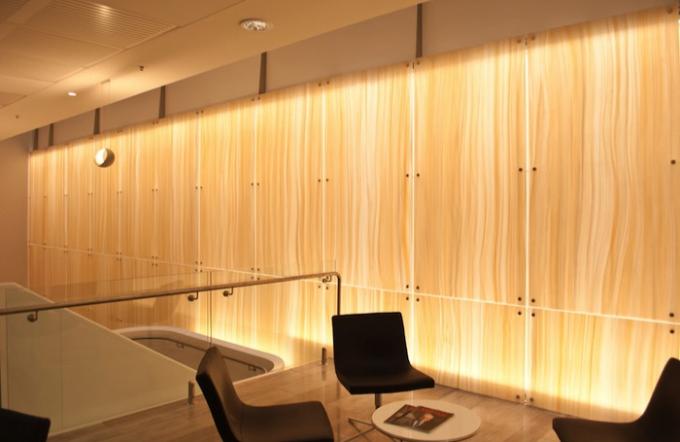 また、背面からLEDなどの照明を当てると、デコレーションストーンパネルの美しいデザインがより一層輝き空間を演出します。