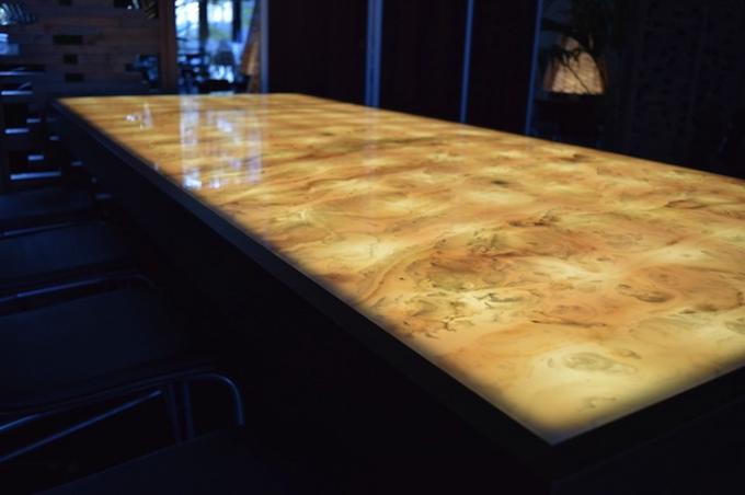 その美しい透明感から、LED照明などと絡めカウンターやテーブルトップ、天井やウォール、スタンドランプやシーリングライトなど採光効果に数多く使われており、店舗やパブリックスペースなどあらゆる空間の装飾にぴったりです。