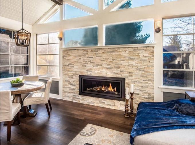 「Regencyコンテンポラリーガス暖炉」は、効率的に空間を温めるだけでなく、エレガントなデザインのフレームやゆらめく炎が、魔法をかけたようにゆっくりとした時間を創造します。