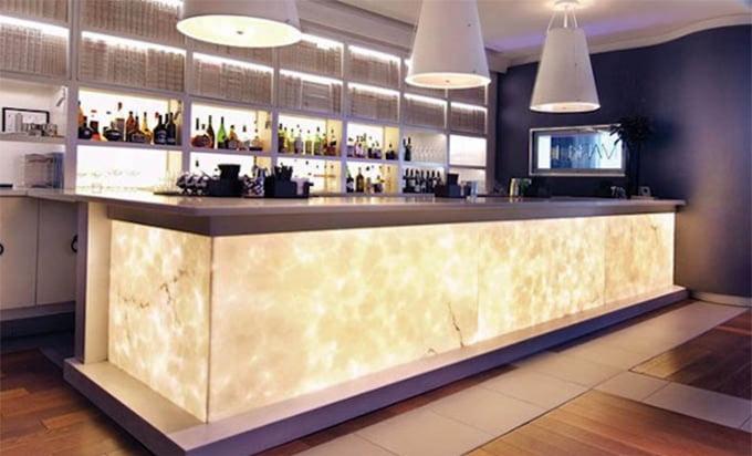 空間に”ポッ”とおぼろげに光る部分装飾に、「デコレーションストーン・パネル」はいかがでしょうか?ラグジュアリーで大人な雰囲気を演出したい方に、とてもオススメです。店舗や飲食店、ホテルなどはもちろん、住宅のとっておきの場所に施工すれば格段に雰囲気を醸し出せます。