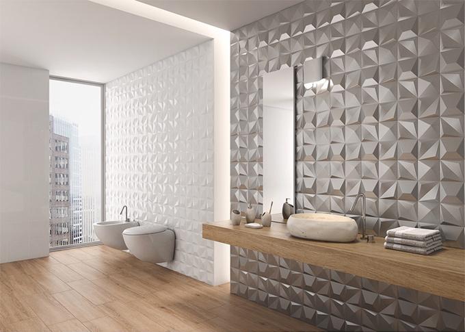 タイルの3D形状が立体感ある独創的・意匠性の高い空間を演出するスペイン製装飾タイル「Shapes」