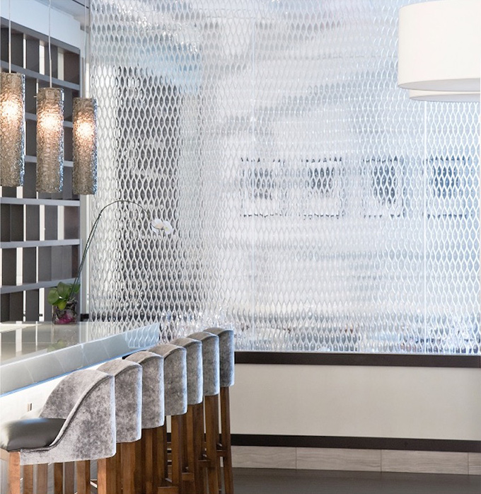 ガラス表面にテクスチャーや凹凸を施した、装飾性・独創性の高い「装飾ガラス」。エレガントな空間を提供し、美しい照明効果をもたらします。
