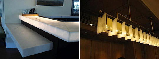 素材の持つ美しい透明感と温かさから、店舗やホテル・レストランなど、あらゆる空間デザインの装飾に最適なデコレーションストーン・パネル