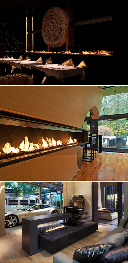 バイオエタノール燃料を使用するため、燃焼する際に有害物質や煤などが発生せず、通常排気に必要な煙突が要らないエタノール燃料暖炉。