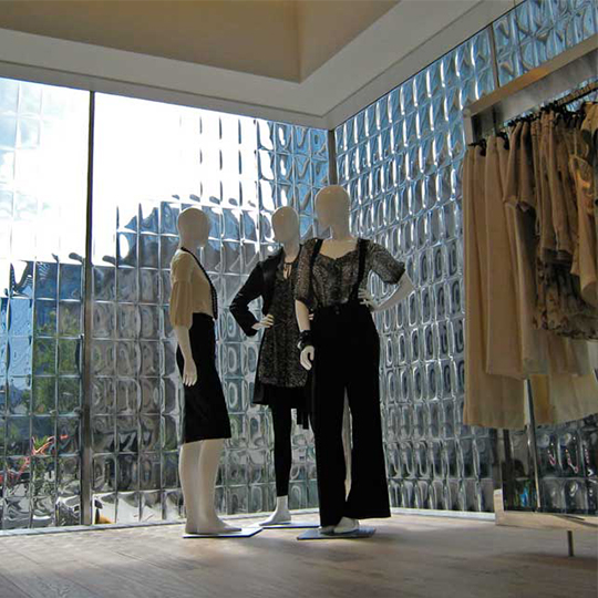 ガラス表面にテクスチャーや凹凸を施した、装飾性・独創性が高く、150種類程度のテクスチャーデザインを揃え、パーテーション、ウォール、フローリングやテーブルトップなど、あらゆる用途に使用でき美しい空間を演出する装飾ガラス。