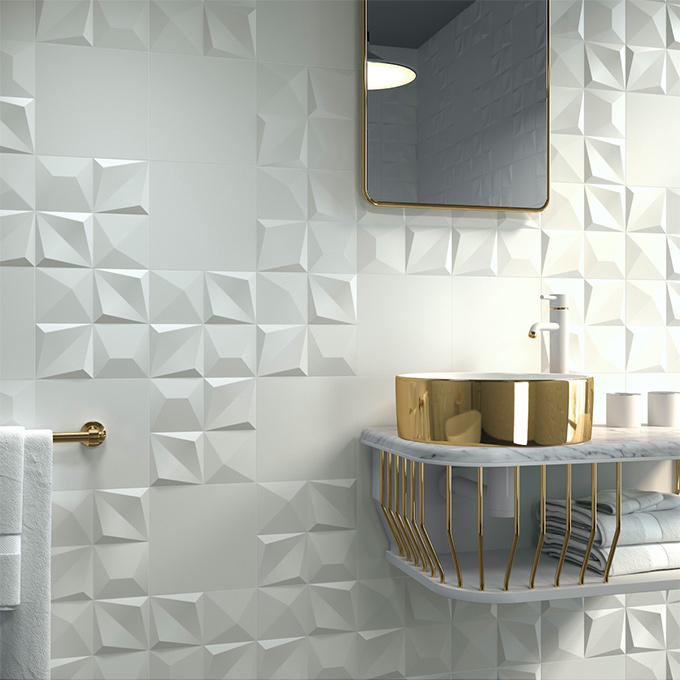 タイルの3D形状が立体感ある独創的・意匠性の高い空間を演出するスペイン製装飾タイル「Shapes」