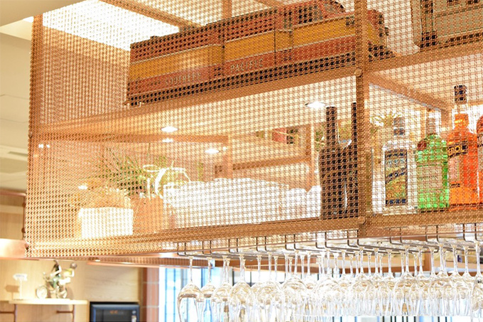 空間の視界を狭めず広がりある空間を創造し、メタルの力強さと輝きが装飾性・独創性の高い空間を演出するメタルメッシュパネル!