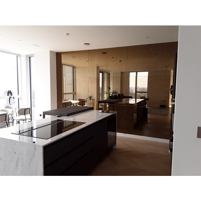 広がりある開放的な空間を演出しながら、趣ある魅力的な壁面を演出する「アンティークミラーガラス」