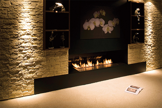 希望の設置箇所に自由かつ簡単に組み込んで使用できるエタノール燃料暖炉