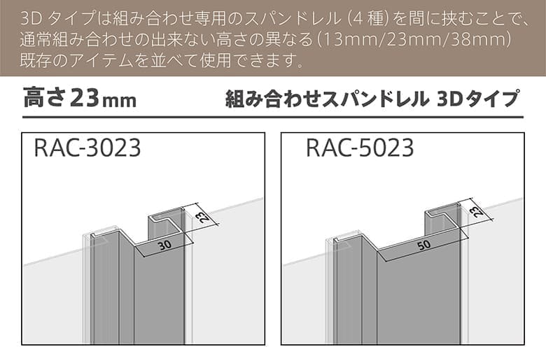 高さ13mm/23mm/38mmタイプが一緒に使える!立体的な表情を見せる凹凸のある組み合わせが可能。